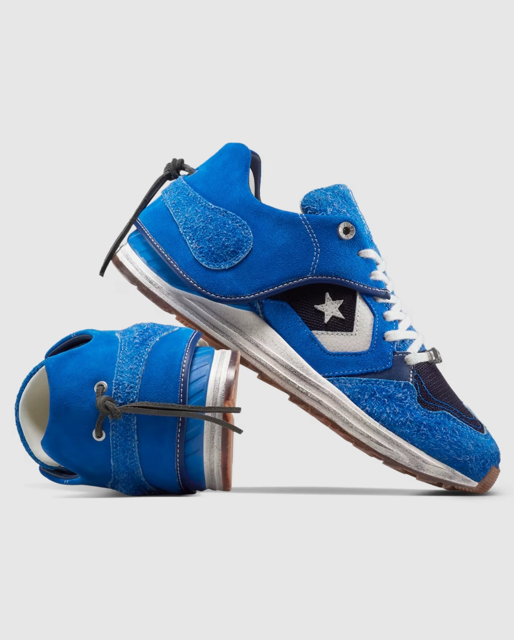 This limited-edition Wave Trainer is a bold take on Converse’s performance-inspired classic. In true ADERERROR fashion, the design feels like a mash-up of timelines. Distressed finishes, mixed-material overlays, and a layered construction suggest both age and reinvention. The signature blue hue—a calling card for the Korean collective—ignites the upper with sharp contrasts.