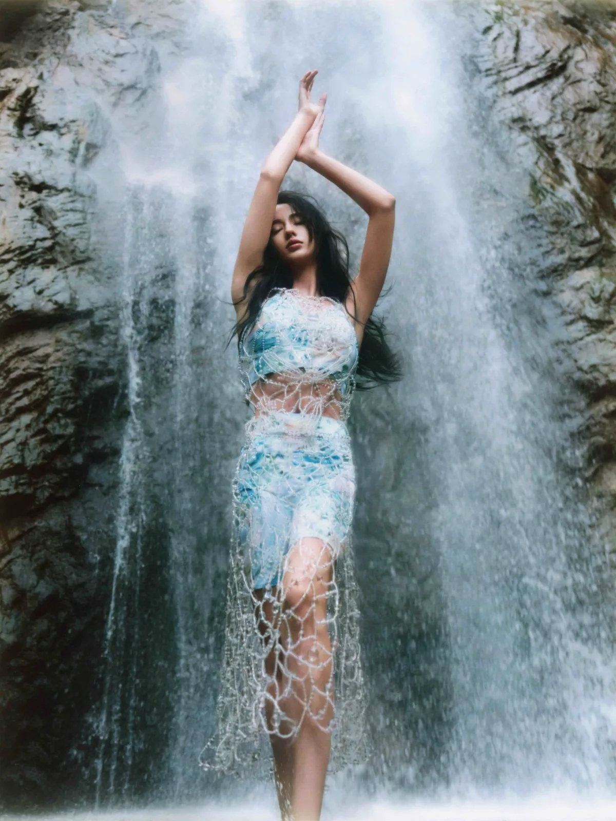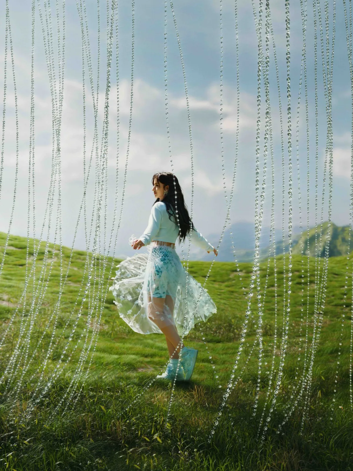 Water droplets became a central motif, symbolizing fleeting moments of beauty. Fang reimagines the Nike Swoosh as rippling streams and creates beaded flowers that float as if suspended in air. This vision transforms performance wear into a poetic statement, where grace and resilience coexist. “I feel so lucky to work with Nike in blending sport, design and style,” says Fang, “to express the dynamic beauty of people and nature.”