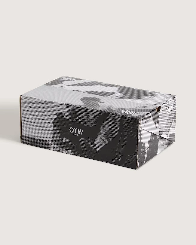 Every inch of the sneaker is covered with Atiba’s photography — uppers, sidewalls, even the hidden linings. The result is a black-and-white mosaic that captures moments in motion. Minimal branding allows the visuals to take center stage, with subtle touches like “ATIBA” printed above the OTW logo.