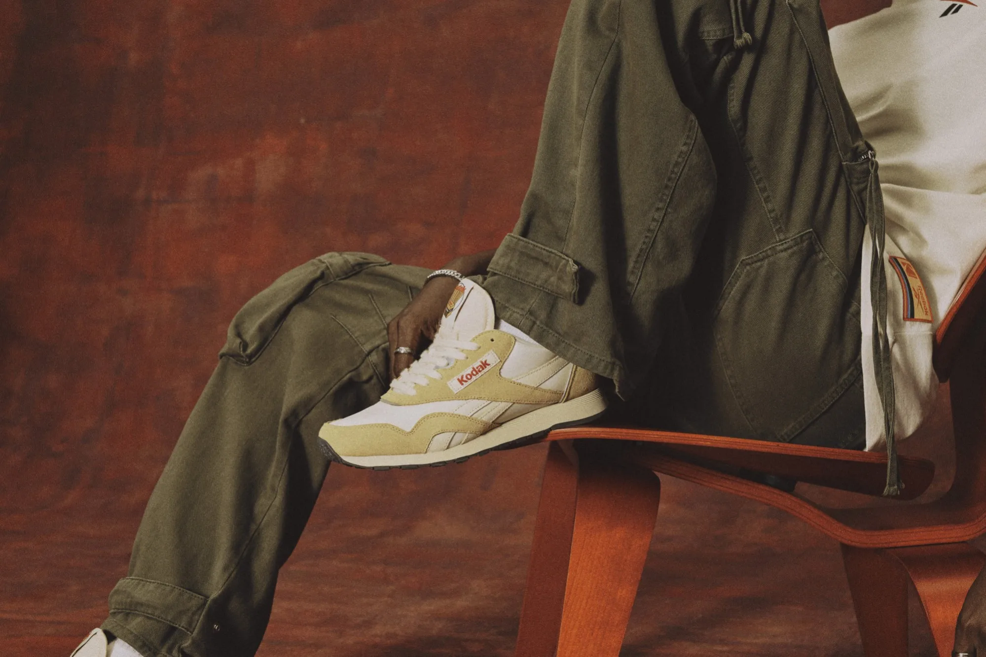 The Reebok x Kodak collection captures the spirit of analog nostalgia through modern design, blending film-era warmth with Reebok’s timeless classics.