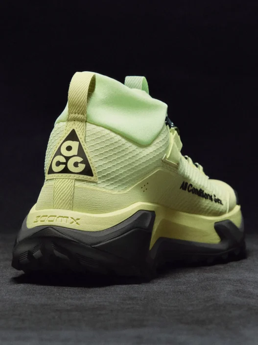 Outlined in Neptune Green, the Swoosh and the heel tab feature a lenticular design inspired by acoustic waveforms. An amplified design, using hotter reds and yellows, appears on the lateral forefoot and on the sockliner.